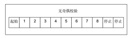 - 1个起始位、8个数据位,最小有效位先发送、1个奇偶校验位(如果无校验则没有这一位)、1位停止位(有校验位时)或者2个停止位(无校验位时)。