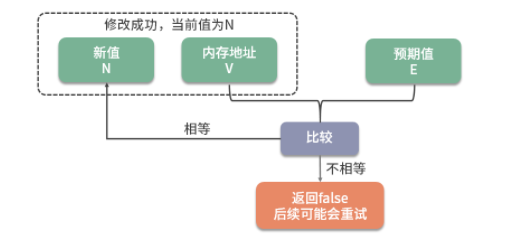 - CAS 函数就把这两个步骤合并成一条硬件级指令,形成原子指令,这样就保证了这两个步骤是不可分割的,要么一次性执行完两个步骤,要么两个步骤都不执行。