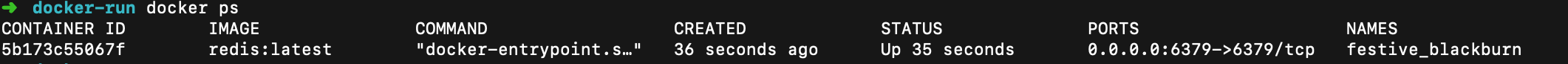 -p 6379:6379:将容器的6379端口映射成主机的6379端口