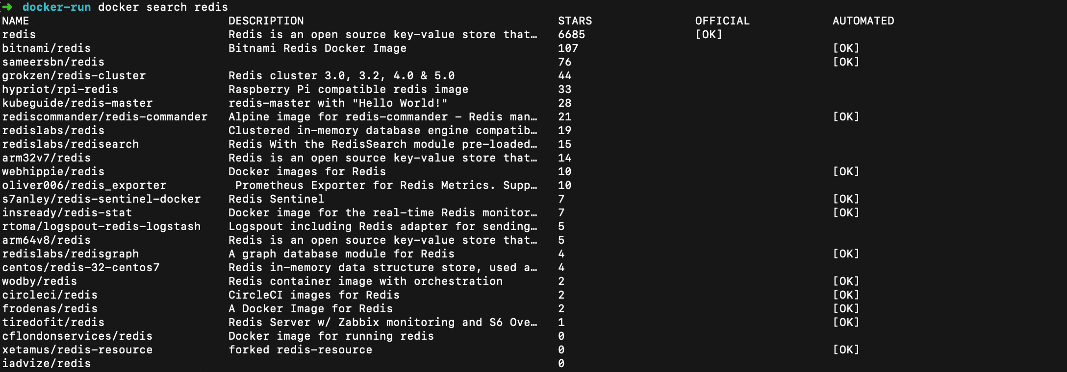 docker pull redis 直接拉去官方的镜像,一般第一个就是。