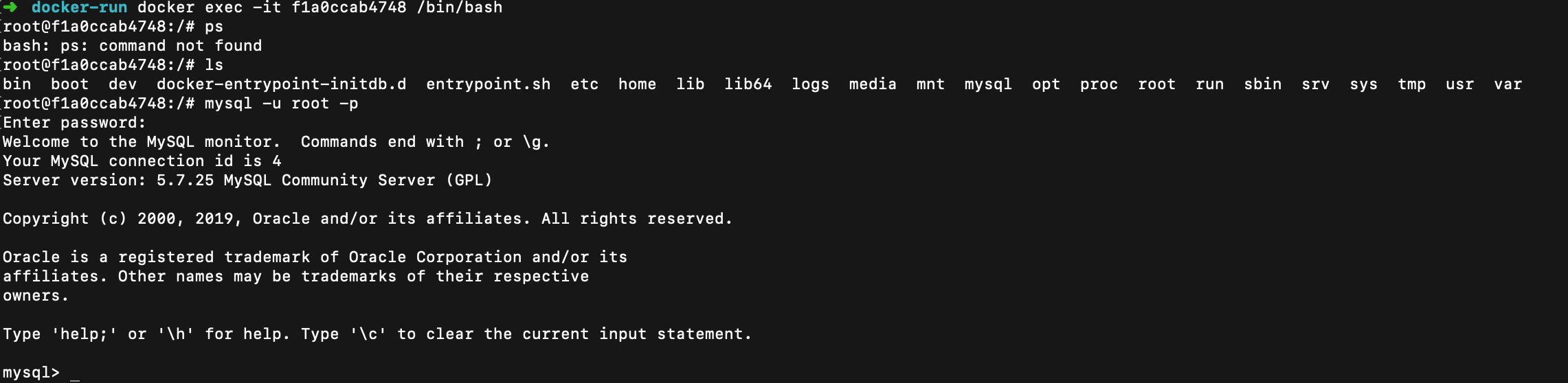 docker run -p 3306:3306 -v $PWD/mysql/conf:/mysql/etc/mysql/conf.d -v $PWD/mysql/logs:/logs -v $PWD/mysql/data:/var/lib/mysql -e MYSQL_ROOT_PASSWORD=123456 -d mysql:5.7