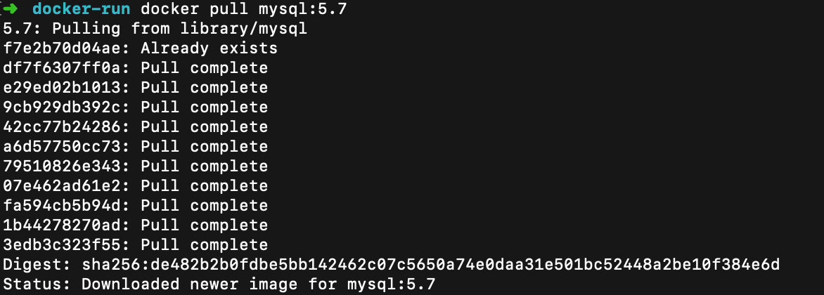 docker pull mysql:5.7 直接拉去官方的镜像, 可以使用指定版本。