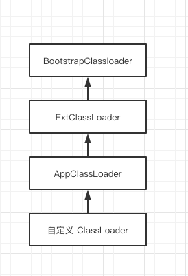 - 如果父类加载器还存在其父类加载器,则进一步向上委托,依次递归,请求最终将到达项层的启动类加载器;