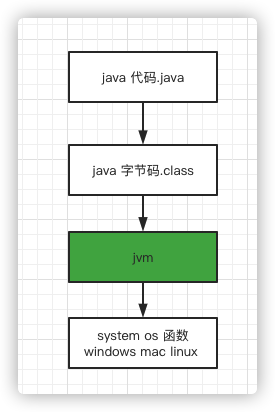 - 如上图所示,通过JVM,Java实现了跨平台、只要class文件能正常执行,就可以在其他系统上面运行。 JVM 与操作系统之间的关系:JVM 上承开发语言,下接操作系统,它的中间接口就是字节码。