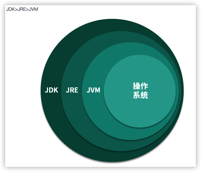 - JDK 的全拼,Java Development Kit JVM、JRE、JDK 它们三者之间的关系,可以用一个包含关系表示。