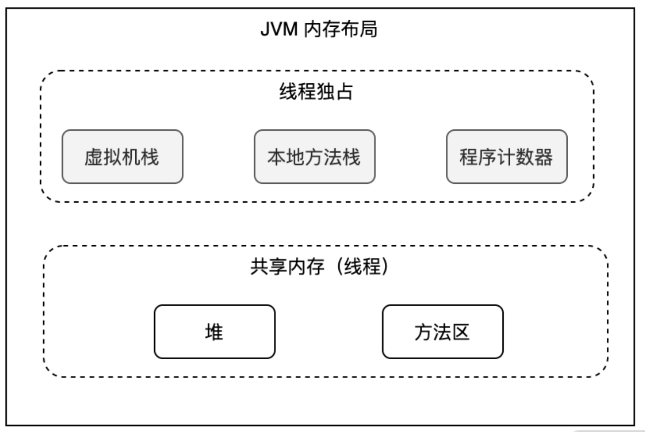 - 程序计数器(Program Counter Register) 线程独有一块很小的内存区域,保存当前线程所执行字节码的位置,包括正在执行的指令、跳转、分支、循环、异常处理等。