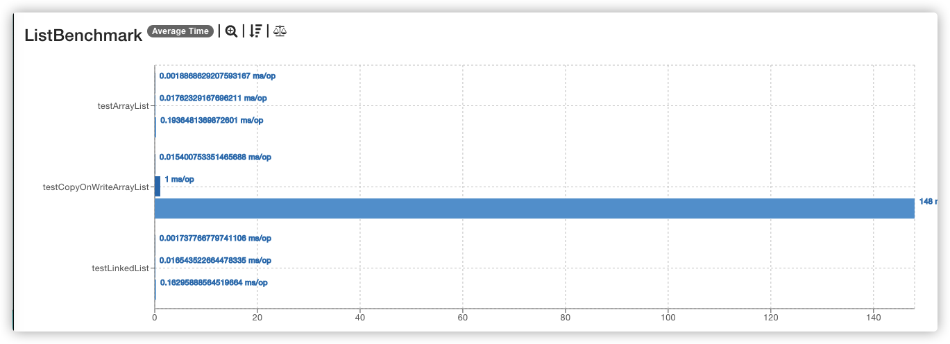 ListBenchmark.testCopyOnWriteArrayList 10000 avgt 148.161 ms/op